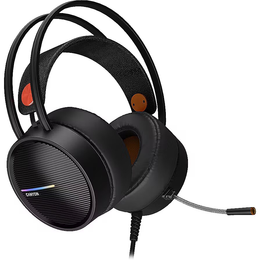 ProductDescription - CANYON INTERCEPTOR GH-8A, Gaming headset 3.5mm jack plus USB connector for LED backlight, adjustable microphone and volume control, with 2in1 3.5mm adapter, cable 2M, Black and Orange, 0.36kg