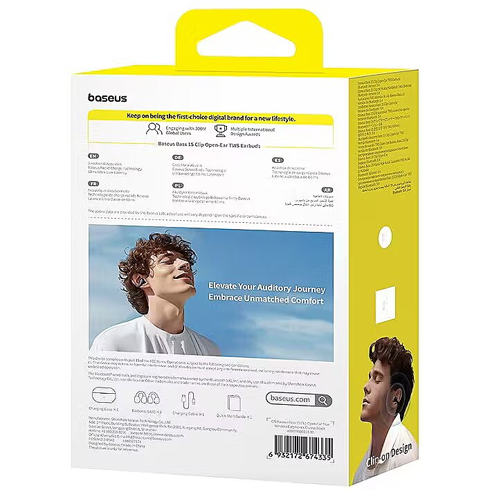 description_en - Baseus Bass 15 Clip are wireless earphones with an open-ear design that provides comfort and situational awareness, ideal for sports and active lifestyles. They support Bluetooth 5.4 for stable connection. Built-in microphone with noise cancellation ensures clear voice transmission. Touch controls allow music playback, call handling, and voice assistant activation.