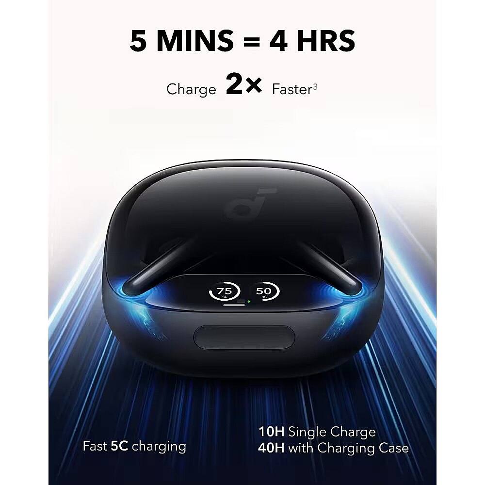 LongDesc - Enjoy Uninterrupted Music Journey with New True-Wireless EarbudsMatchless Noise Cancellation: 7 sensors detect noise from every angle. From planes to trains, enjoy a serene journey with 3× stronger noise reduction.Real-Time Adaptive Noise Reduction: Adapts to your ever-changing environment every 0.3 seconds, ensuring optimal, seamless noise reduction.Effortless Controls: The case's touch bar and display let you fine-tune the noise-cancelling levels at any time with a simple swipe on the case.Studio-Level High-Fidelity Music: Indulge in crisp, full-bodied sound with ACAA, a 10.5mm driver, a titanium-coated tweeter, and a digital crossover.Super Fast Charging: Charge 2× faster. A 5-minute refuel offers 4 hours of playtime. Up to 10 hours from one charge and up to 40 hours with the case.6-Mic AI Clear Calls: With a noise cancelling algorithm, a wind noise reduction tech, and six microphones, enjoy clear calls wherever you are.Liberty 4 Pro7-Sensor Precise Noise Cancelling1. Based on tests conducted in the soundcore lab, Liberty 4 Pro can reduce up to 12.2 dB more noise in the 600-700Hz range when tested from the opposite side of the earbud. This improvement is three times more effective than with the adaptive noise cancelling algorithm turned off. | 2. Calculated based on the recalibration frequency of the ANC algorithm, which is three times per second when no audio is being played. | 3. It charges twice as fast as Liberty 4 NC. | 4. LDAC enables the transmission of audio content at the maximum bitrate of 990kbps, which transmits 3× more data compared with standard SBC codec with the bitrate of 328kbps.You can turn on LDAC mode in the soundcore app. LDAC is only compatible with Android devices. | LDAC and LDAC logo are trademarks of Sony Corporation. | Hi-Res Audio logo and Hi-Res Audio Wireless logo are registered trademarks or otherwise trademarks of Japan Audio Society.React to Every Noise as You GoRecalibrates NoiseCancelling Every 0.3s² forEver-Changing Environments7-Sensor Precise Noise CancellingLiberty 4 Pro noise cancelling earbuds boast 7 sensors—6 sound sensorsand 1 barometric pressure sensor—to capture noise from every angle.From planes to trains, enjoy a serene journey with 3× stronger noise reduction.3× Stronger Noise ReductionFind your oasis of calm even in bustling city life and crowded flights. Six sound sensors, one barometric sensor, and a real-time algorithm ensure up to 3× stronger¹ noise cancellation.Control with Touch Bar and DisplayThe touch bar and display let you fine-tune, the noise cancelling levels of these wireless earbuds at any time with a simple swipe on the case.Super Fast ChargingLiberty 4 Pro noise cancelling earbuds charge 2× faster than the previousmodels with the 5C battery. A 5-minute recharge offers 4 hours of playtime.Enjoy up to 10 hours between charges, extendable to 40 hours with the case.Hi-Fi Sound with Rich DetailFeature the enhanced ACAA acoustic architecture, a 10.5mm bassdriver, a titanium-coated tweeter, and a digital crossover for peakdriver performance. Indulge in crisp, full-bodied sound perfectedwith nuances.