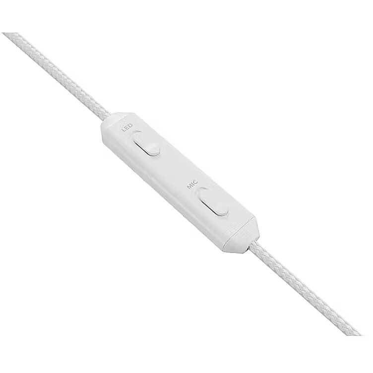 ShortDescription - słuchawki nauszne | przewodowe | mikrofon ruchomy | białe | 2,2 m | regulacja głośności | Podświetlenie RGB | Mini Jack 3.5 mm, USB Typ-A