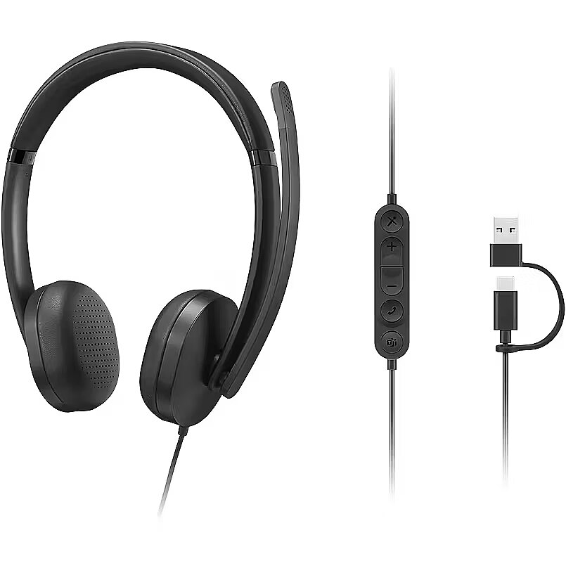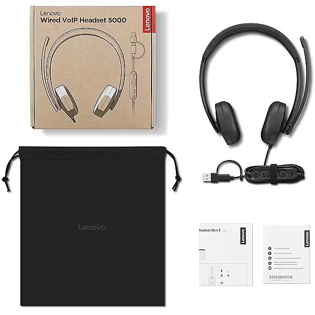 LongDesc - The Lenovo Wired VoIP Headset 5000 is a Teams-certified professional headset that is designed for the workplace. The USB-C plug and USB-A converter make it plug-and-play-compatible with various devices. In addition, it is lightweight, portable and comfortable for all-day use. With the AI noise reduction on the LADM software, this headset delivers excellent noise cancellation in loud environments – making sure you are heard clearly all the time.