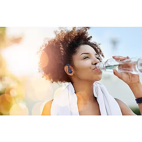 LongDesc - Secure hook-type earbuds with light and compact body ideal for sports scene along with the sufficient waterproof performance. Single ear use or included open type earpieces make jogging outside safer by capturing the ambient sounds while total 30-hour of battery life, stable wireless connection, Mic for hand free calling or teleworking make it good for daily use.Secure and Lightweight DesignHook-type true wireless earbuds provide a secure fit during sporting activities. The soft material and lightweight design combine for a comfortable and stable fit. Plus, they can also be used for normal daily use with a sense of security they won’t fall off.Quality Exercise with Quality SoundEnjoy high sound quality with Neodymium magnet drivers and three selectable sound modes (Normal/Bass /Clear).Ideal for Outdoor Fitness/ActivityFor safety and convenience, two options for remaining aware of ambient sounds – single ear use with either earbud, or the use of the included open-type earpieces.Touch sensor controls and auto on/off – Just take the earbuds out to connect, and then return to the case when done, that’s all. Power on/off & connection is done automatically.Stable ConnectionBluetooth version 5.1 helps ensure a stress-free stable connection whenever you need it most.30-Hour Long Battery LifeEnjoy your music for up to 30 hours with the built-in battery and charging case. Now you never have to worry about running out of battery power.Exercise AlliesIPX5-rated waterproof and sweatproof, ideal for exercise, running, and other fitness activites. Of course, it can also be used during rainy days.