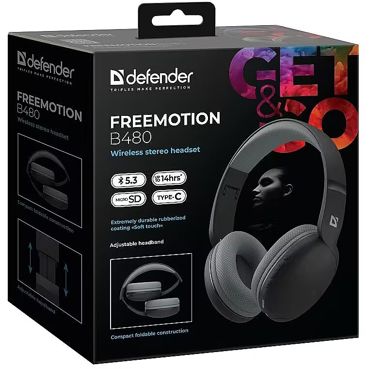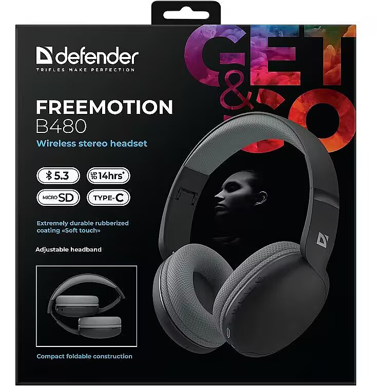 Description - FreeMotion B480 Wireless Headset. Lightweight and comfortable wireless headset with a pleasant coating and good sound. Micro SD card slot, operating time - up to 14 hours.