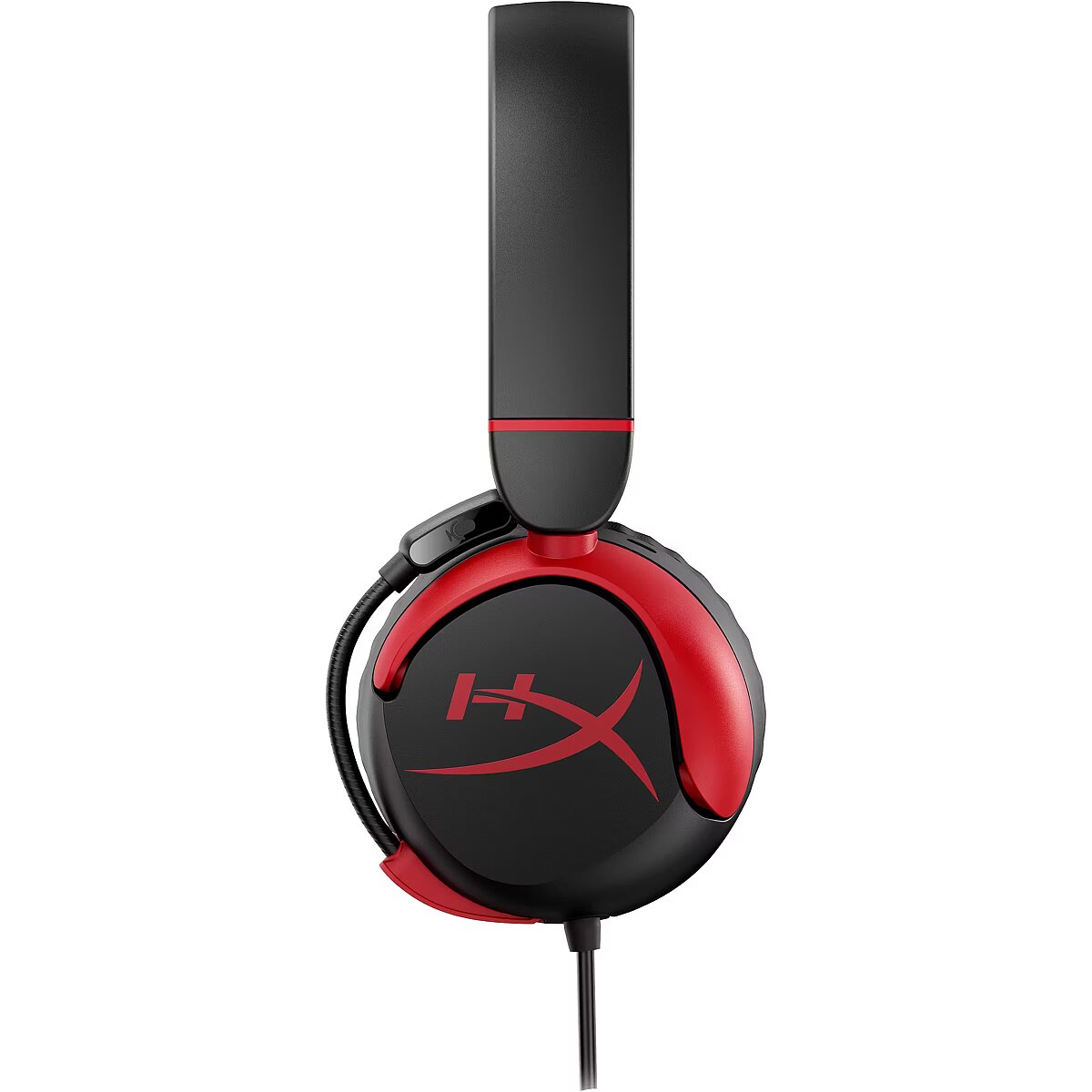 LongDesc - Designed for growing gamers.The HyperX Cloud Mini is a comfortable wired headset built for aspiring star gamers. Recommended for ages 8-12, it’s lightweight and appropriately sized for younger gamers, and more importantly, it’s designed to keep audio levels below 85dB[1]. It features a clear, flip-to-mute mic so younger gamers can chat with their friends online, and it can be tucked away when not in use[3]. The earcups can be rotated when it’s time to take a break, and they’re also great for easy transport or storage. Cloud Mini can easily connect to any device that has a 3.5mm connection, so whether your young gamer is playing on mobile, Chromebook, Nintendo Switch, PlayStation, PC, Steam Deck, or elsewhere, this versatile headset will be ready for it[2].