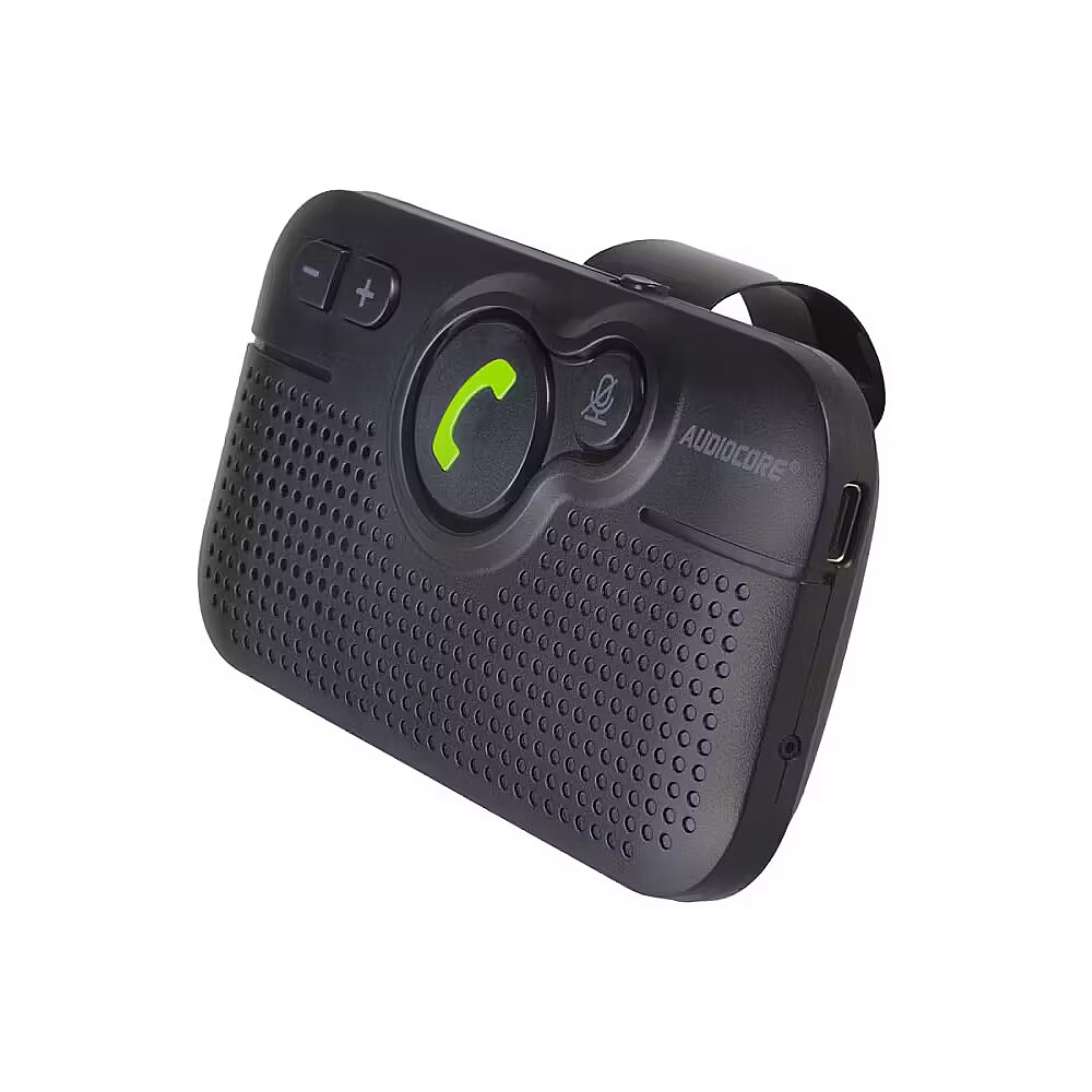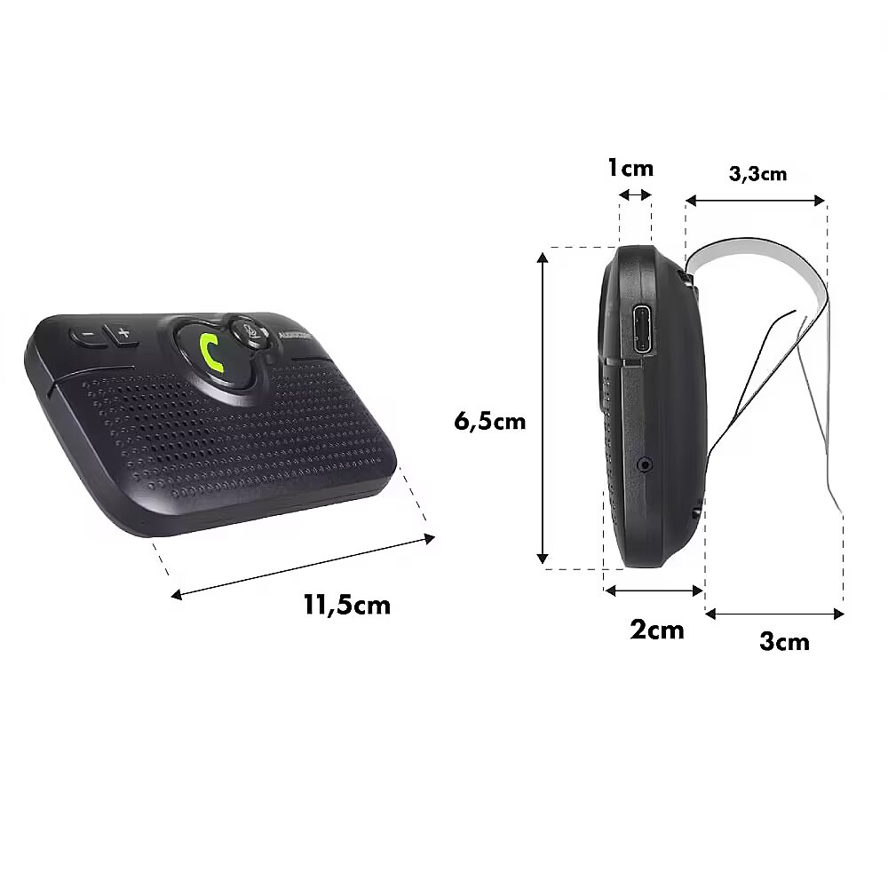 Description - The Audiocore AC475 hands-free kit is a modern device that allows you to safely make phone calls in your car. With Bluetooth 5.0 technology and A2DP support, it provides high quality sound. The device is equipped with a 2W speaker and supports Google and Siri voice assistants. Premium Quality Sound The AC475 headset is designed with high sound quality in mind. With Bluetooth V5.0, HD voice, noise cancellation technology and a premium speaker, you can enjoy crystal clear calls. Your Perfect Solution Audiocore AC475 is the ideal solution for drivers who want to make phone calls without taking their hands off the wheel. With the ability to pair two devices at the same time, the user can use two phones. The kit has a motion sensor that automatically activates the device when the car door is opened, and also automatically switches to standby mode when the door is closed. Standby time is up to 1,000 hours, and talk time is up to 20 hours, ensuring long-lasting use without the need for frequent charging. - Manufacturer: Audiocore - Model: AC475 - Dimensions: 11.5 x 6.5 x 2 cm - Speaker power: 2W - Bluetooth version: 5.0 - Operating range: up to 10 m - Operating frequency band: 2.4 GHz, 2.48 GHz, unlicensed LSM band - Supported Bluetooth profiles: hands-free profile, headset profile, A2DP profile - Digital signal processing (DSP): Transmit signal noise reduction up to 21 dB, acoustic echo cancellation - Support: Google Assistant, Siri - Standby time: up to 1000 hours - Talk time: up to 20 hours - Charging time: about 3 hours - Battery: lithium polymer 650 mAh - Charger voltage: DC 5.0 V, 500 mA - Motion sensor: yes - Ability to pair two devices: yes - Color: black.