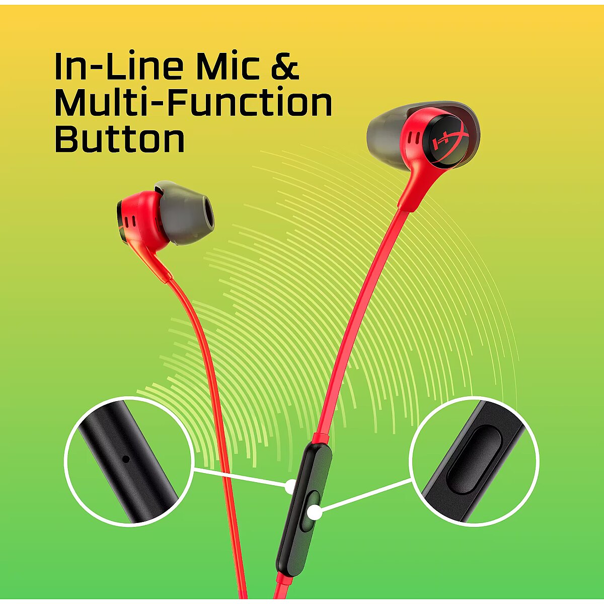 LongDesc - Comfortable mobile gaming audio.You don’t have to wear a headset to take your gaming seriously. If you demand quality audio and convenient portability, the HyperX Cloud Earbuds II have got you covered. With 14mm drivers optimized for mobile audio, you’ll have a great listening experience whether you’re gaming, watching videos, or listening to a good audiobook or podcast. 4 sets of redesigned ear tips will help ensure you get the right fit for your ear. The Cloud Earbuds II also feature a low-profile 90° cable to help you avoid snags, as well as a helpful hard carrying case. For busy multitaskers, the built-in microphone allows you quickly swap from mobile gaming to answering phone calls with a touch of the multi-function[3] button. These versatile earbuds are compatible with PC[1], Nintendo Switch, Steam Deck™, and mobile devices[2] that use a 3.5mm connection.