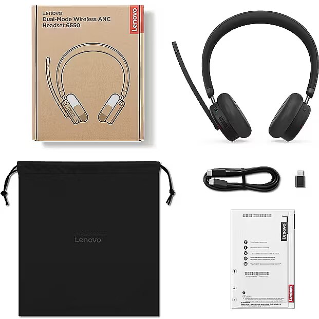 LongDesc - For professionals in open offices or hybrid work setups, the Lenovo Dual-Mode Wireless ANC Headset 6550—an official Microsoft Open Office Teams-certified wireless headset—elevates workplace communication to a new standard. It guarantees stable call performance and seamless integration with Microsoft Teams. Equipped with advanced ANC (Active Noise Cancellation) and ENC (Environmental Noise Cancellation) technologies, it effectively blocks out ambient distractions—even in bustling, high-noise environments—ensuring every word in calls stays crystal clear.Designed for all-day wear, its ergonomic structure delivers lasting comfort; meanwhile, its intelligent dual connectivity enables smooth, instant switching between devices (such as PCs and smartphones). Tailored for dynamic workspaces, this headset stands as a dependable tool to help professionals stay focused and boost productivity.