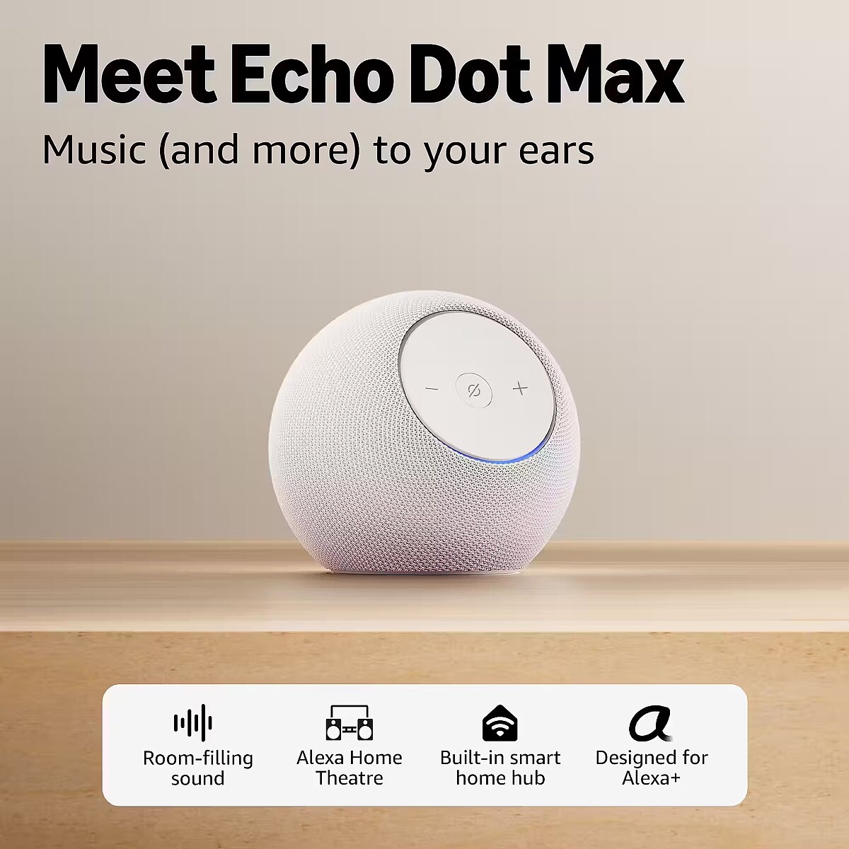 Max viib Echo Doti heli uuele tasemele, pakkudes rikkalikku ja ruumi täitvat kõla, mis kohandub automaatselt sinu keskkonnaga ja häälestab muusika peensusteni. Echo Dot Max sisaldab sisseehitatud nutikodu keskust ja Omnisense tehnoloogiat veelgi kaasahaaravama kogemuse jaoks. Kõike seda juhib kiire AZ3 kiip. Muusika sinu kõrvadele