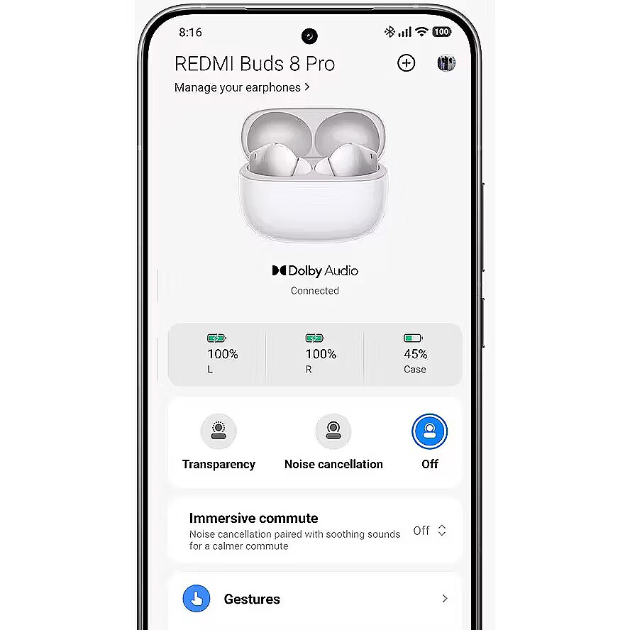 REDMI Buds 8 Pro offer up to 55 dB of active noise cancellation and up to 5 kHz wide frequency coverage, effectively reducing ambient noise on the street and in public transportation. Real-time noise cancellation: The headphones detect environmental noise with high-precision frequency and automatically adjust noise cancellation according to the situation and wearing style. Immersive mode on the move: specially tuned for travel (airplane, high-speed train, public transportation), combines noise cancellation and sound masking to suppress distracting sounds even in poor reception. 3 microphones and AI noise reduction