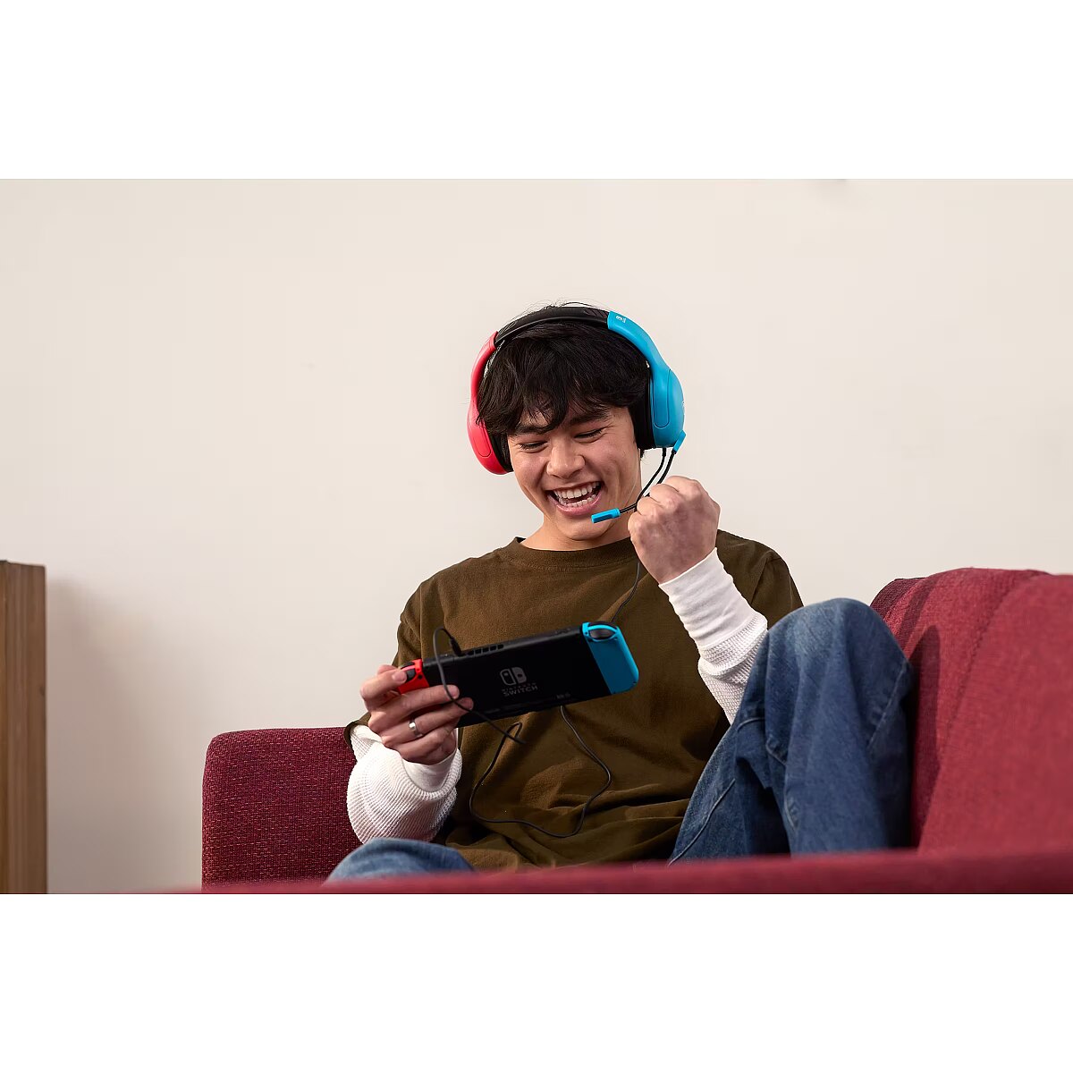 ProductName - Airlite Fit Neon Blue and Red Wired Gaming Headset with Flip-to-Mute Mic, Over-Ear Premium Comfort and 40mm Speakers. Officially Licensed for Nintendo Switch