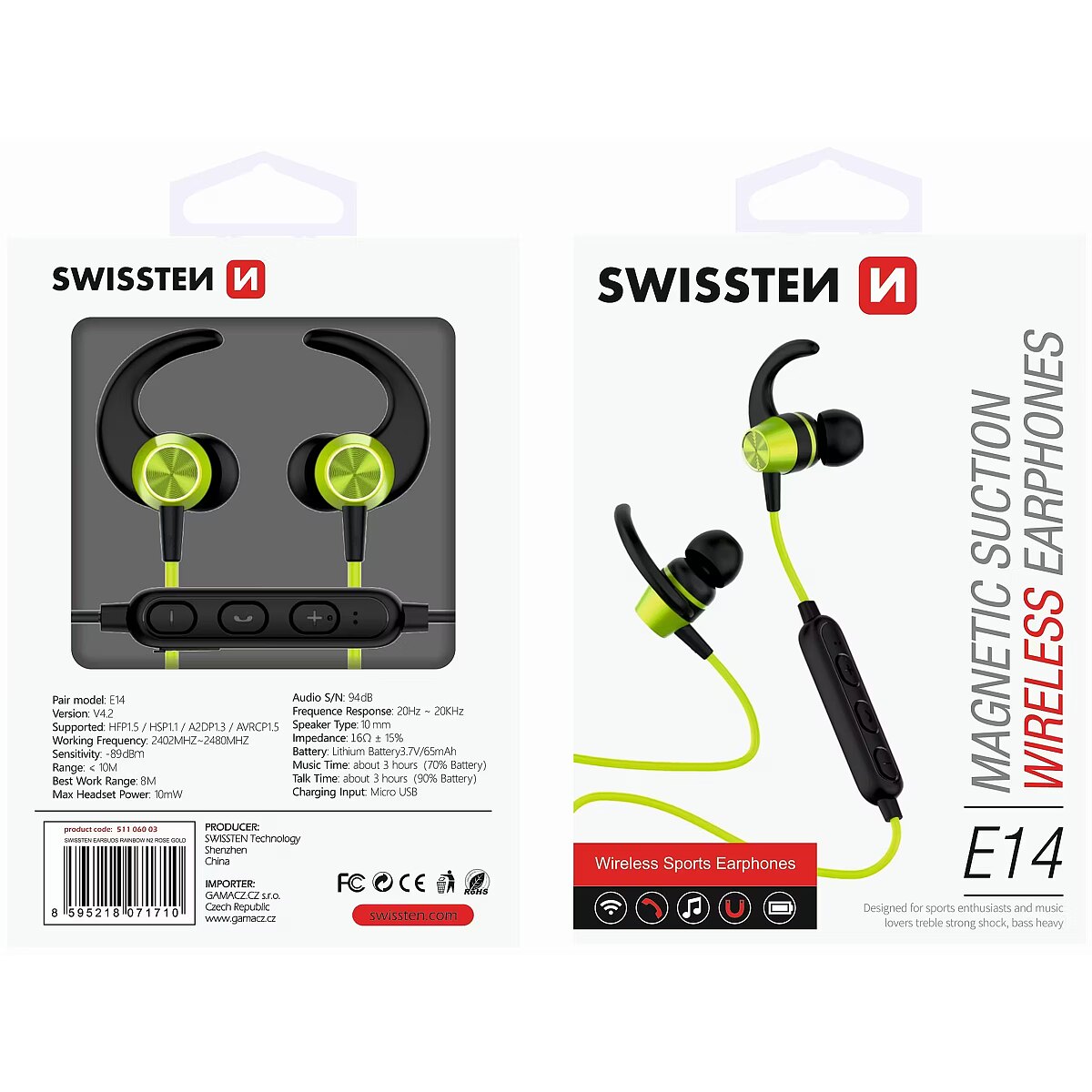description_en - Wireless stereo headphones will be appreciated by all users who require freedom of movement. To listen to your favorite songs, just connect your headphones to your smartphone via bluetooth. The integrated microphone also gives the headphones a handsfree function. Buttons let you control call and volume directly from headphones. Included are 3 sizes of silicone earplugs. SWISSTEN blister pack.