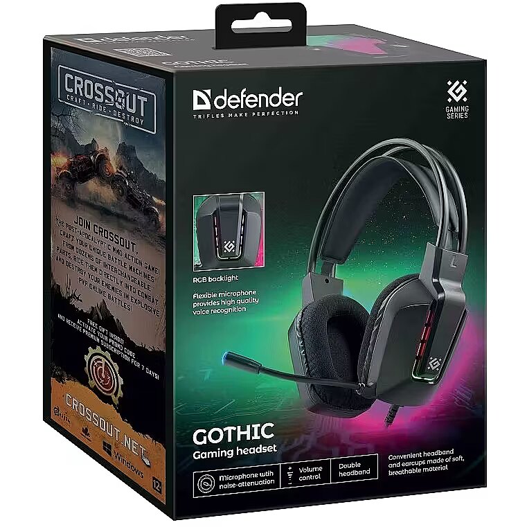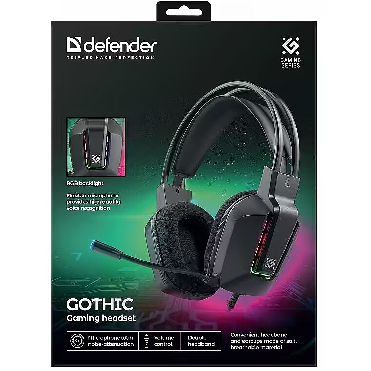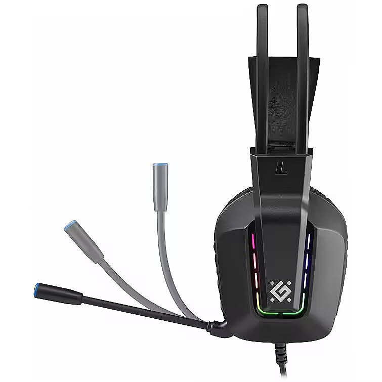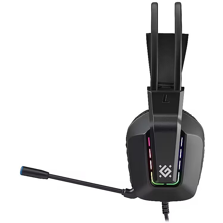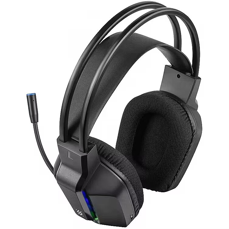 Description - Self-adjusting ear cushions for comfortable long-term wear. The hard outer shell ensures a proper fit around the ears, while the soft inner padding provides comfort. Headphones with active noise cancellation for maximum sound isolation, ideal for noisy environments or when full focus is required during gaming. Large ear cups RGB lighting Dual headband Closed-back headphones Comfortable headband and ear cups made of soft, breathable material Noise-canceling microphone Volume control No need to use the computer to adjust the volume