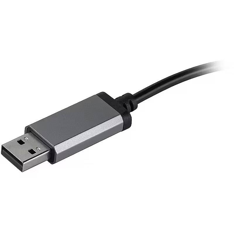 The headphones connection to the computer. A cable for a long-term and stable sound experience is the most popular type of connection.