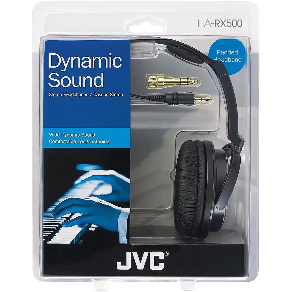 LongSummaryDescription - JVC HA-RX500-E. Product type: Headphones. Connectivity technology: Wired. Recommended usage: Music. Headphone frequency: 10 - 22000 Hz. Cable length: 3.5 m. Weight: 194 g. Product colour: Black, White