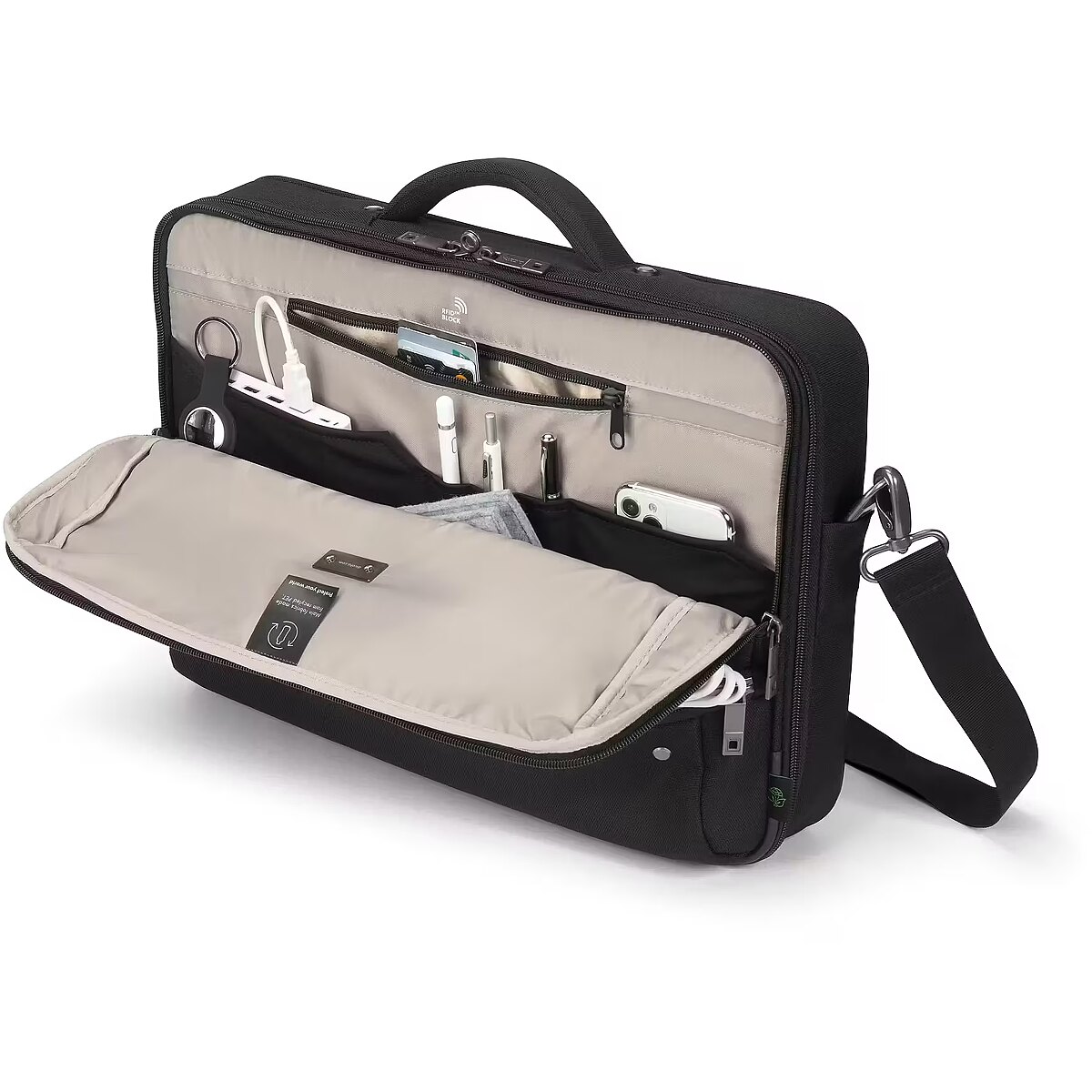 Description - Notebook bag Multi FIVE 14-16 inches The MULTI FIVE ensures optimal protection and organization for your devices and documents. The lockable notebook compartment with HDF foam provides maximum safety, while the integrated tablet pocket offers additional storage. A dedicated back compartment keeps documents neatly organized, and the front section features structured pockets for accessories. Made from 19.5 recycled PET bottles, it's a smart, eco-conscious choice.