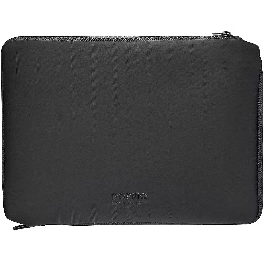 MediumDescription EN - The Doppio laptop and MacBook sleeve offers reliable everyday protection with a practical and minimalist design. Made from 4 mm thick neoprene with partially recycled plastic content, it features two compartments for your device and accessories, along with an Anti-Slip-System band and non-slip corner flaps to keep your laptop securely in place. • Made with material partially produced from recycled plastic• 4 mm thick neoprene for impact and scratch protection• Two compartments for laptop or tablet and accessories• Anti-Slip-System band to secure the laptop• Non-slip corner flaps for added stability