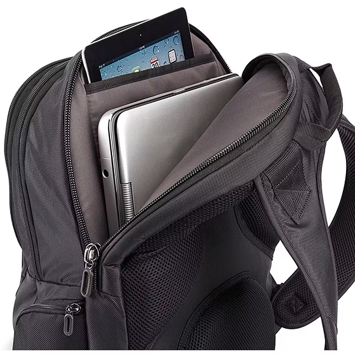 Technical details > Other features - For the always in-transit professional, this backpack offers a sleek alternative to a briefcase. Ample storage space, full electronics capacity and unique accessory pockets are inconspicuous beneath the streamlined, tapered construction and subtle tone-on-tone design. durable, water-resistant materials protect this backpack from daily wear and tear