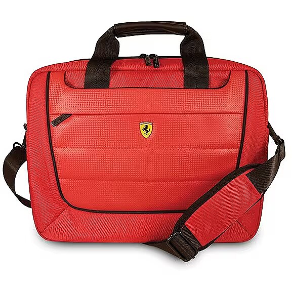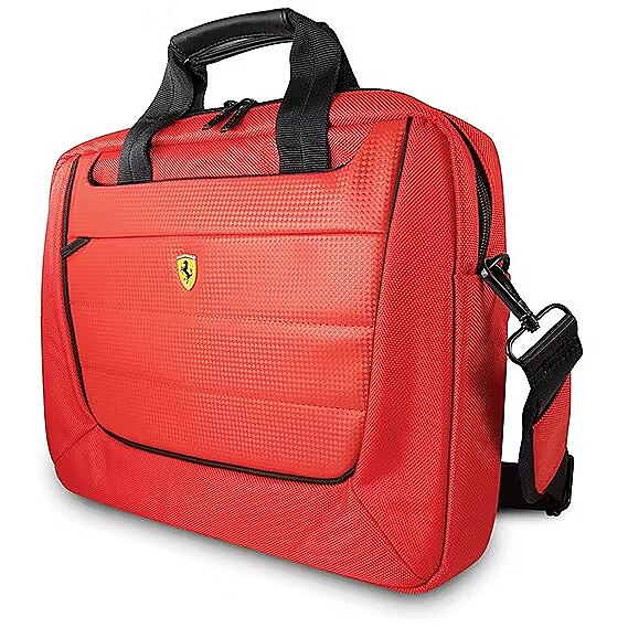 Description - The stylish and elegant Ferrari Scuderia bag, compatible with devices up to 16", is perfect for business meetings and everyday use. Carry your favorite tablet or laptop with Ferrari fashion. High-quality lightweight construction made of waterproof nylon and leatherette, inspired by The bag can be carried in hand or on the shoulder thanks to the detachable, adjustable strap.Collection