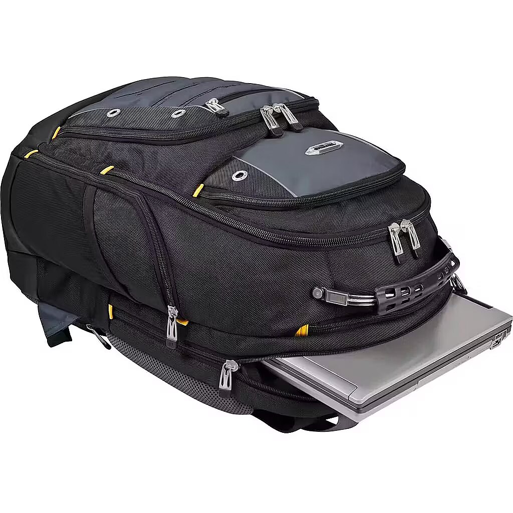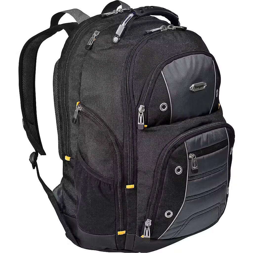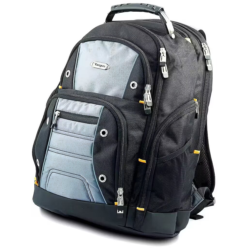 LongDesc - The Targus Drifter II Laptop Backpack is designed to fit laptops with up to 16” screens. This backpack features two large compartments for storage including a padded laptop compartment that keeps the device secure and separate from other items carried in the case. The extremely thick padding on the back panel includes a large hidden zippered compartment and is strategically placed to provide lumbar support for your back. The heavily padded shoulder straps provide comfort for travel and include a removable mobile phone pocket large enough to hold an iPhone or BlackBerry as well as an elastic loop specifically designed to hold sunglasses on the shoulder strap. The main front compartment includes pockets for business cards, a mesh accessory pocket and key clip. A convenient soft, lined pocket is scratch-resistant to store fragile accessories such as glasses, and more. To keep files in order, the interior divider provides a safe place to store documents. Focusing on durability, the Drifter backpack features a weather-resistant bottom, thick industrial zipper pulls and a sturdy molded plastic handle supported by metal grommets and cabling. The Drifter Backpack offers a rugged case full of storage options and protective compartments for important devices.