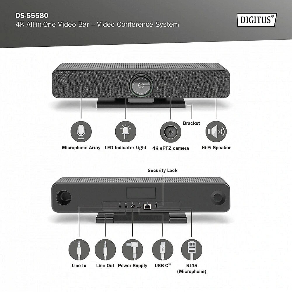 Name - Digitus | 4K All-in-One Video Bar Pro – Video Conference System | DS-55580