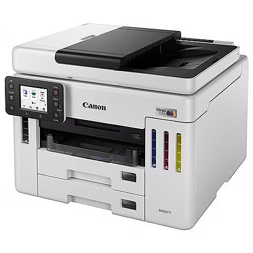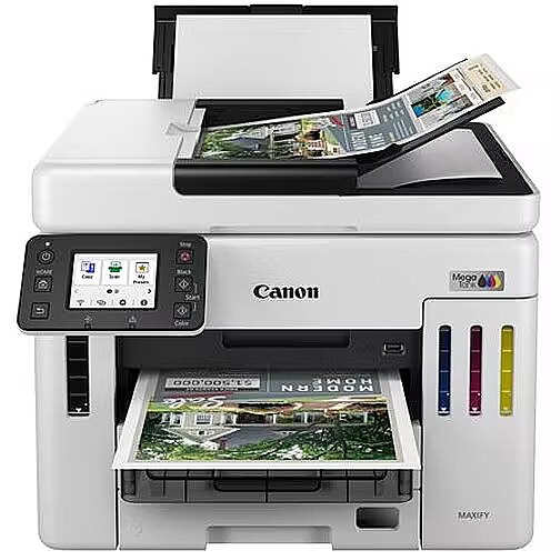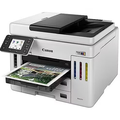 Description - Canon MAXIFY GX7140 Wykorzystaj możliwości wydajnego drukowania biznesowego drukarki MegaTank dzięki pojemnym, umożliwiającym uzupełnianie atramentu zbiornikom. Możesz liczyć na wydruki o jakości biznesowej i wyjątkowo niski całkowity koszt posiadania. MAŁE DECYZJE, MAKSYMALNY EFEKT Dzięki tym niezawodnym drukarkom MegaTank umożliwiającym drukowanie w dużych nakładach i uzupełnianie zbiorników na atrament szybko wydrukujesz dokumenty klasy biznesowej, osiągając średnie oszczędności na całkowitym koszcie posiadania4 na poziomie 90% w porównaniu z możliwościami 10 najlepszych drukarek laserowych i atramentowych. DOSKONAŁA PRACA W KAŻDYM ŚRODOWISKU Właściciele firm, którym zależy na tanim drukowaniu w dużych nakładach, docenią możliwości modelu MAXIFY GX7140. Biura nieruchomości Automatyczny podajnik dokumentów na 50 arkuszy pozwala szybko tworzyć oferty nieruchomości dla klientów oraz skanować i kopiować kluczowe dokumenty bez obaw o brak atramentu lub papieru. Drukuj wizytówki na papierze matowym lub błyszczącym. Handel detaliczny Drukuj faktury bez wysiłku dzięki stałej niezawodności, dużej szybkości i niewielkim wymiarom urządzenia. Twórz wysokiej jakości, trwałe materiały do punktów sprzedaży, banery promocyjne i etykiety wszystko we własnym zakresie. Prywatne kliniki Drukuj dokumentację klientów i informacje o nowych wizytach, a nawet dane bezpośrednio na kopertach. Stwórz ciekawe materiały promocyjne, które wypromują możliwości Twojej kliniki. Instytucje edukacyjne Twórz materiały szkoleniowe, materiały do prezentacji oraz dokumenty administracyjne każdego dnia, korzystając z oszczędnej drukarki. Niezmiennie niskie koszty Obniż koszty druku biznesowego dzięki ogromnej wydajności 14 0001 stron z zestawu butelek z kolorowym atramentem lub 60001 stron z butelki z czarnym atramentem. Aby uzyskać jeszcze większe oszczędności, przełącz się na tryb ekonomiczny. Trwałe dokumenty - błyskawiczne drukowanie Drukuj wyróżniające się dokumenty biznesowe z jaskrawymi kolorami i niezwykle wyraźnymi szczegółami nawet z tak drobnymi detalami jak kody kreskowe i kody QR w tempie przekraczającym 24 obr./min w czerni oraz 15,5 obr./min w kolorze. Z łatwością możesz zarządzać obiegiem dokumentów za pomocą specjalnych funkcji biznesowych. Niewielki rozmiar, duże możliwości Pilne zlecenia nie będą problemem dzięki podajnikowi dokumentów na 50 arkuszy umożliwiającemu jednoprzebiegowe skanowanie dwustronne, odchylanemu kolorowemu ekranowi dotykowemu o przekątnej 6,9 cm oraz zasobnikowi papieru o pojemności 600 arkuszy. Obsługa różnorodnych nośników możliwość drukowania banerów o długości do 1,2 m. Maksymalna wydajność Oszczędzaj energię dzięki wydajnemu drukowaniu atramentowemu przy użyciu bardzo wydajnych butelek z atramentem oraz funkcji skanowania do folderów sieciowych, poczty e-mail lub pamięci USB. Wymieniana przez użytkownika kaseta konserwacyjna minimalizuje czas przestojów. Bądź w kontakcie Aplikacja Canon PRINT umożliwia drukowanie, skanowanie i kopiowanie oraz łączenie się z chmurą. Zgodność z usługami Apple AirPrint (iOS) i Mopria (Android). Wykorzystaj łączność Ethernet i obsługę sieci Wi-Fi. Bezpieczeństwo i ochrona Korzystaj z wielopoziomowej ochrony dzięki zabezpieczeniom Wi-Fi WPA3, obsłudze szyfrowania TLS1.3 umożliwiającej bezpieczną wymianę danych oraz automatycznym aktualizacjom oprogramowania sprzętowego przeciwdziałającym najnowszym zagrożeniom.