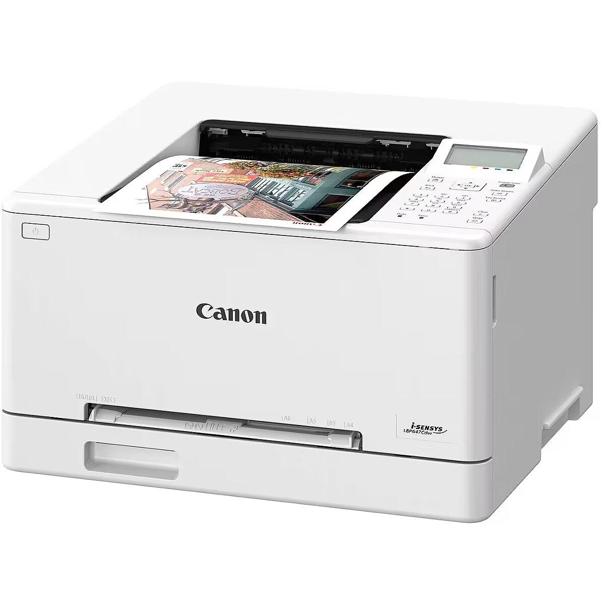 LongSummaryDescription - Canon i-SENSYS LBP647Cdw. Print technology: Laser, Colour. Maximum duty cycle: 30000 pages per month. Maximum resolution: 1200 x 1200 DPI. Maximum ISO A-series paper size: A4. Print speed (black, normal quality, A4/US Letter): 25 ppm, Duplex printing. Display: LCD. Wi-Fi. Product colour: White