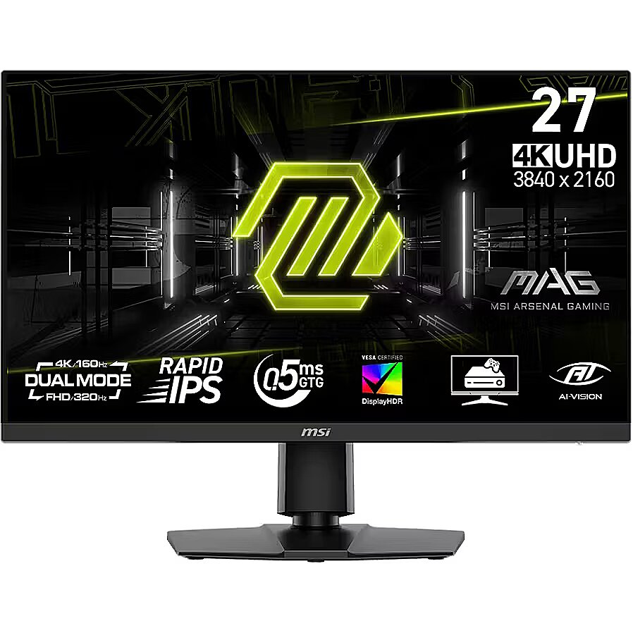 LongDesc - Experience immersive gaming with the MAG 272URDF E16 gaming monitor. Featuring Dual Mode with UHD 160Hz and FHD 320Hz, along with AI Navigator for an enhanced gaming experience, it delivers exceptional performance. Certified with VESA DisplayHDR 400, it refines contrast and shadows for stunning visual clarity. Designed for competitive FPS, first-person RPG/MMORPG, and flight/racing simulators, the MAG 272URDF E16 redefines casual gaming, pushing players to see beyond the game.MSI's mainstream MAG series epitomizes stability and durability and is built to withstand the most intense gaming sessions. The entire lineup features robust construction with metallic-like hardness and excellent heat dissipation, ensuring stability for all critical gaming components.Dual ModeDual Mode allows you to select the resolution and refresh rate that best suit your game—choose a higher refresh rate with lower resolution for fast-paced FPS games or enjoy crisp 4K visuals with a lower refresh rate. Designed with a user-centric approach and ergonomic convenience, it features a 5-way Joystick Navigator on the right side of the screen and a one-click switch button, making it easy to toggle Dual Mode settings and providing a seamless, user-friendly experience.ASPECT RATIO OPTIONSSupports a variety of aspect ratios, allowing selection of 24.5” imagery. Choose the size you want at your leisure, and elevate your gaming experience to the utmost.