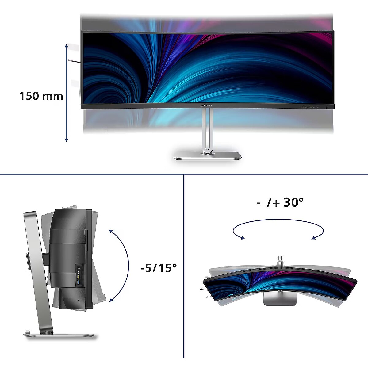 This Philips 49B2U5900C Office Monitor - Curved, DQHD, USB-C, KVM-Schalter monitor with DQHD 5120x1440 resolution ensures a clear and comfortable image for work, study, and everyday tasks. It combines a convenient form factor, modern design, and optimal visual features, making everyday use more productive and enjoyable. Ievads - for home and office ?>
