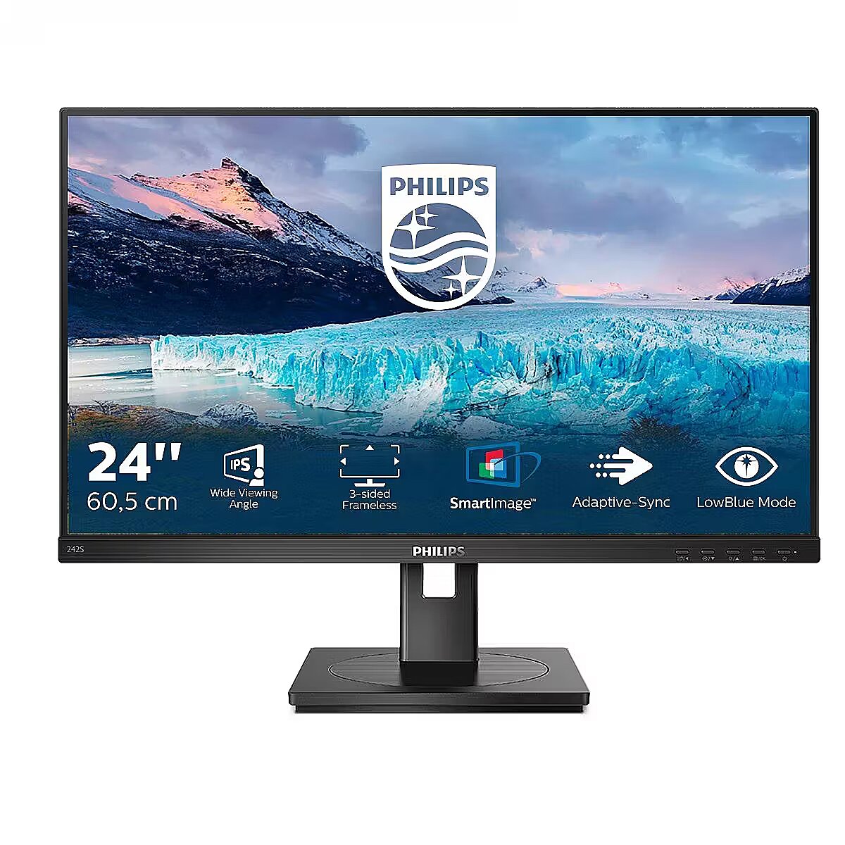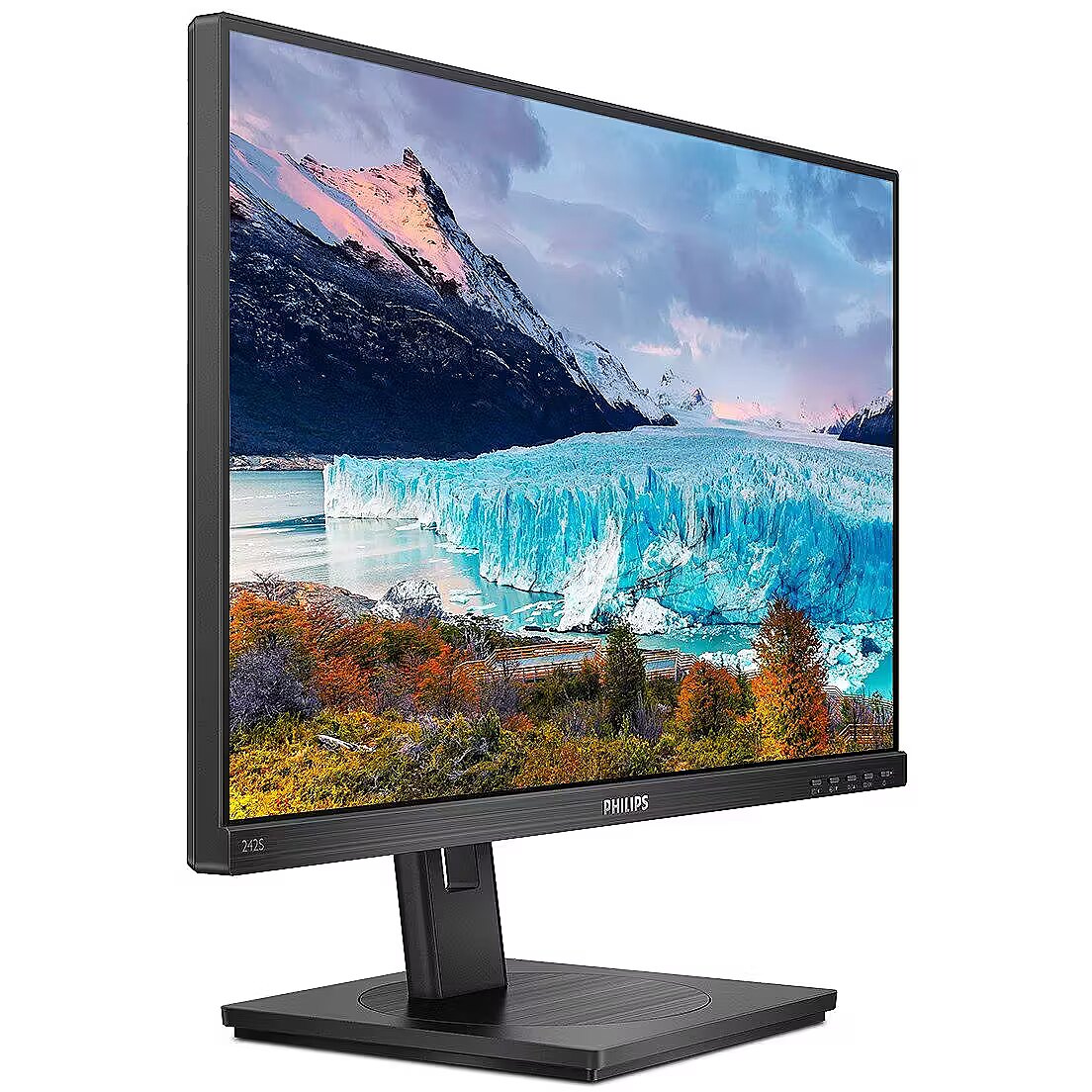This Philips S-Line 242S1AE, 23.8" monitor with FHD 1920x1080 resolution ensures comfortable conditions for prolonged work and online activities. It offers a clear image, extensive usage possibilities and fits perfectly in a home or office working environment. IPS technology ensures more accurate color representation and stable image when viewed from the side. Compared to TN and VA, it changes brightness and contrast less with viewing angle, making the displayed data visually more reliable and technically more accurate. This monitor with a 75 Hz refresh rate ensures predictable pixel operation and sufficient motion smoothness for standard tasks. It is suitable for document work, image processing and video viewing, guaranteeing stable frame updates without unnecessary system or user load. Flicker-Free reduces the frequency flickering common to some brightness adjustment methods. This reduces visual stress and ensures a smooth, pleasant image for the eyes. The technology is particularly useful for working in darker rooms and during prolonged viewing sessions. The Pivot technology allows the screen to be rotated into vertical orientation, ensuring more efficient use of workspace when working with text, documents, or long lists. This design improves readability, reduces the need for scrolling, and enhances convenience. The Swivel mechanism allows for changing the horizontal angle of the screen without moving the entire structure. This facilitates workspace adjustment, improves visibility from different points and helps adjust the monitor for various usage scenarios, including configurations for multiple users or multiple monitors. Tilt mechanism allows to change the screen's vertical angle without moving the whole construction. Such adjustment improves workplace ergonomics, ensures stable image quality and helps to adapt the monitor to the user's individual preferences or specific tasks. Compatibility with VESA wall mount makes the monitor universal for installation: it can be attached to the wall, used with a movable bracket or integrated into an ergonomic stand. The standard facilitates assembly, improves cable organization and frees up additional space. Monitors with built-in speakers provide direct sound playback, eliminating the need for external audio devices. It simplifies the setup of the working system and saves space. The speakers are suitable for everyday needs, including online meetings, training, and watching videos, providing an adequate level of sound. The D-Sub interface supports analog video signals, allowing the monitor to be connected to older generation equipment without additional adapters. It provides stable image transmission and correct graphics replay, making the monitor a universal solution for various operating systems and simplifying integration in existing configurations. DVI ensures monitor compatibility with a wide range of video cards, including models from previous years, while maintaining high image quality. The interface stabilizes the transmission of graphics, supports various resolutions, and reduces distortions, making it a reliable choice for working with various systems. HDMI is a digital interface designed for stable video and audio transmission with a single cable. This approach reduces the number of connections and prevents unnecessary signal conversion. HDMI ensures a reliable connection, high throughput, and precise operation with modern devices without loss of quality. DisplayPort is a modern image transmission standard that ensures stable playback with high resolution and refresh intensity. The interface supports HDR and multiple monitor configurations, transmits details without quality loss and provides accurate graphics display on professional and gaming monitors. The monitor comes with a 1 year warranty