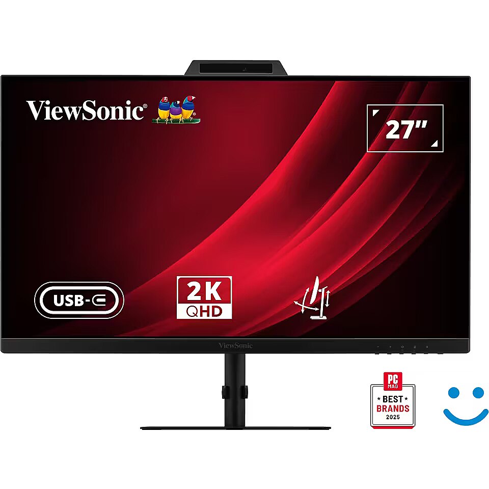 LongDesc - The VG2741V-2K is a 27” QHD (2560 x 1440) USB-C video conferencing monitor with Windows Hello, designed to deliver secure, high-quality virtual meetings straight out of the box. With facial recognition login via Windows Hello, users can sign in quickly and securely—reducing password fatigue and minimizing the risk of visual hacking. A built-in 5MP adjustable webcam, dual microphones, and dual 2W speakers provide sharp video and clear audio for professional-grade conferencing. The webcam’s ±5° vertical tilt ensures perfect framing, while the built-in privacy cover safeguards user privacy when the camera is not in use. The monitor supports streamlined connectivity with a USB-C upstream port for video, audio, and data, plus HDMI, DisplayPort, and three USB 3.2 downstream ports—making it ideal for both home and office environments. The VG2741V-2K combines a sharp QHD resolution with a 120Hz refresh rate for ultra-smooth, pixel-precise visuals—ideal for video conferencing, multitasking, and media playback. Eye ProTech+ technology helps reduce fatigue with low blue light and flicker-free viewing. For additional productivity, it supports vDisplay Manager for on-screen control and vSplit for efficient window layout management—both available via the ViewSonic Display Portal. With full ergonomic adjustability including height, tilt, swivel, and pivot, the VG2741V-2K adapts to your setup for long-lasting comfort and flexible workflows.Windows Hello for Secure Hassle-free LoginEnjoy hassle-free access to your digital workspace with Windows Hello, ensuring a swift and secure sign-in with facial recognition. Enhance authentication security, reduce password issues, and minimize the risk of data breaches.An All-in-one Video Conferencing and Live Streaming Setup​Complete with a built-in 5MP adjustable webcam, dual microphones, dual 2W speakers, the VG2741V-2K delivers high-quality, out-of-the-box video conferencing and streaming capability.Perfect Framing with Adjustable Vertical Angle​Tilt the built-in webcam up to 5 degrees in either direction to fine-tune your video angle. Whether you're presenting, collaborating, or streaming, you’ll always stay centered and professionally framed.Physical Slide Cover for Privacy and Peace of Mind​The built-in webcam features a simple slide cover that protects your privacy when the camera isn’t in use. Slide it open to join a call, then close it to instantly block the lens—no settings, no hassle.Streamlined Connectivity with USB-C​The VG2741V-2K features a USB-C port that supports video, audio, and data transfer—all through a single cable. It’s a clean, convenient way to connect your devices and streamline your workspace.Connection FlexibilityThe VG2741V-2K offers flexible connections for modern work setups, including HDMI, DisplayPort, a USB-C upstream port for video and data, and USB-A ports for peripheral support. A dedicated front-facing USB-C port also delivers up to 15W charging—perfect for powering accessories or mobile devices throughout the day.