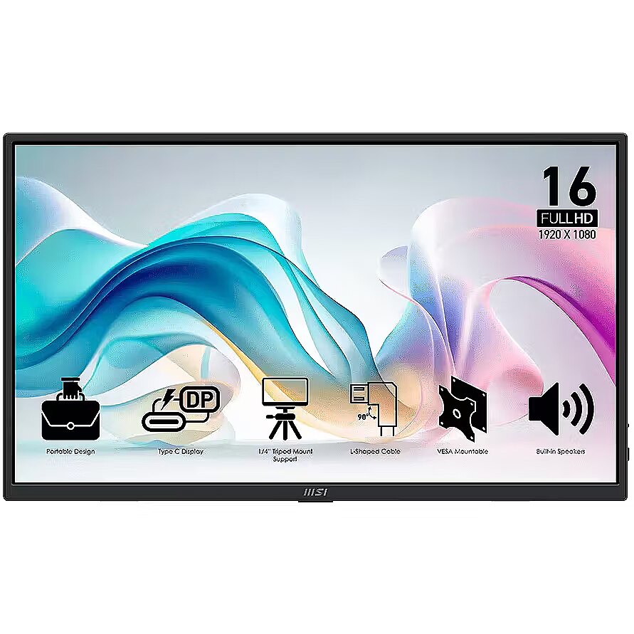 LongDesc - Your Personal Assistant, Anytime, AnywhereWith just one Type-C cable, this portable monitor receives both power and display signal, making it incredibly convenient and clutter-free. Simply plug and play for a seamless experience wherever you go!Keep You ConcentrateThe slim and lightweight design allows you to effortlessly improve productivity, whether you're working at a café, in the office, or working remotely.One Cable For AllWith just one Type-C cable, this portable monitor receives both power and display signal, making it incredibly convenient and clutter-free. Simply plug and play for a seamless experience wherever you go!Universal ConnectionEffortlessly connect your camera, gaming console, or smartphone with universal compatibility. Enjoy vibrant visuals on a single screen, no matter the device, for work or entertainment.L-Shaped CablesThe L-shaped cable design offers endless and visually pleasing choices for arranging your cables and screens. This design makes it easy to create a workspace that is both organized and visually appealing.Flexible Viewing, Smarter Setup – Your Screen, Your Way!Designed for maximum flexibility, the built-in adjustable stand lets you find the perfect viewing angle with ease. It also supports tripod mounting and is VESA-compatible, making it easy to integrate into any workspace—whether on a desk, a wall, or part of a professional setup.Fit Any Angle and ScenarioAdjust the stand to the suitable angle that fits you most.Tripod Mount SupportWith tripod mount support, set up your monitor anywhere for stable, hands-free viewing—perfect for filming, presenting, or on-the-go work.VESA Mount SupportSupports VESA mounting, making it ideal for counters, POS systems, and industrial setups. Easily integrate into any fixed installation for a clean and professional look.Simplicity At Your Fingertips -Display Kit AppThe MSI exclusive software Display Kit provides the most convenient tool, the proper display that allows you to read and enjoy the image at the same time & color mode to you while working or everyday.Power Saving ProductIt is our responsibility to promote sustainable development and we proudly offer an eco-friendly product, contributing to a greener environment.