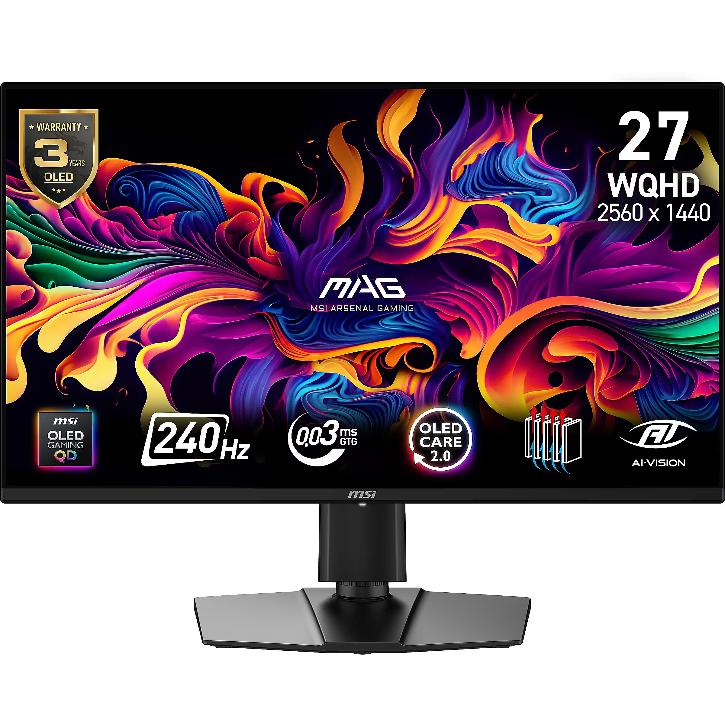 LongDesc - Visualize your victory with the MAG 274QP QD-OLED X24 gaming monitor. Equipped with the latest 3rd-gen QD-OLED panel and features a blazing-fast 240Hz refresh rate, it delivers an elevated gaming experience like never before. The 26.5-inch high-performance display offers a lightning-fast 0.03ms (GtG) response time, ensuring ultra-smooth, crystal-clear visuals. Certified by VESA for ClearMR 13000, it guarantees stunning image quality and reduced motion blur. OLED Care 2.0 technology helps prevent burn-in, extending the panel’s lifespan.MSI's mainstream MAG series epitomizes stability and durability and is built to withstand the most intense gaming sessions. The entire lineup features robust construction with metallic-like hardness and excellent heat dissipation, ensuring stability for all critical gaming components.Smarter 24-Hour OLED RefreshProtection Without DisruptionThe panel refresh cycle has been extended from 16 to 24 hours, reducing interruptions during gameplay or work. Users will only see a reminder 30 minutes before the refresh, ensuring minimal disruption. The refresh still activates automatically when the monitor enters standby or powers off, maintaining full OLED protection without compromising your experience.Confidence GuaranteedMSI OLED monitors are designed for long-lasting, breathtaking visuals. The custom heatsink design and advanced graphene film improve heat dissipation, while dedicated software to reduce the chances of burn-in over time.