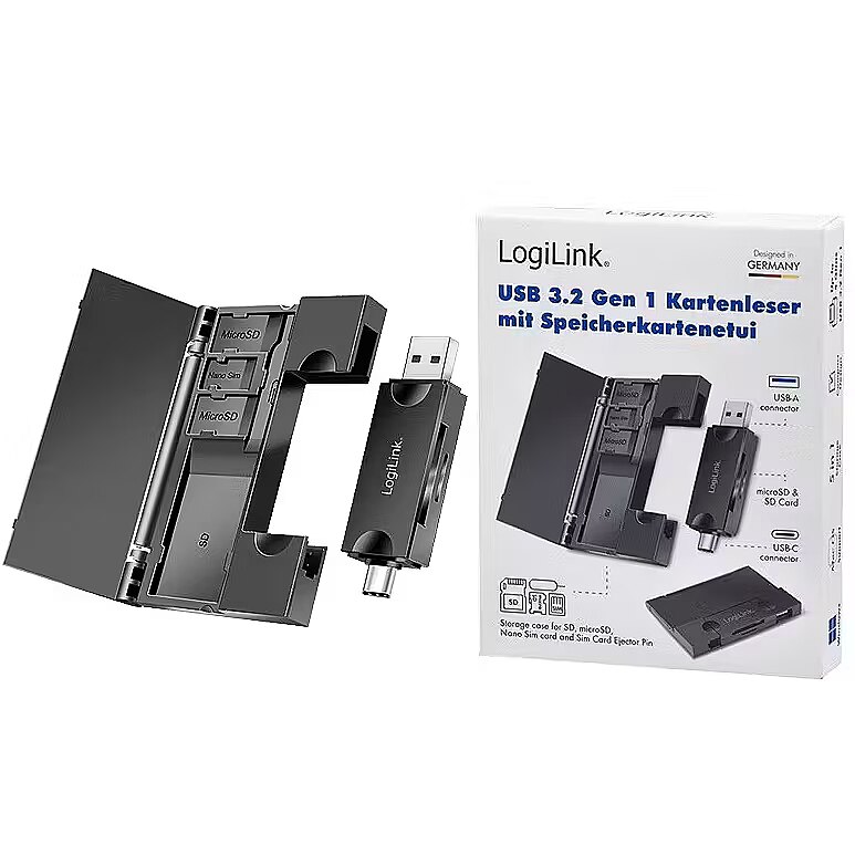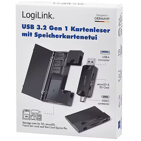 Description -   Whether you're a professional photographer, videographer, or simply looking to store your data, the LogiLink USB 3.2 Gen1 card reader with a memory card storage housing is an essential tool for efficient and secure management and transfer of your data.