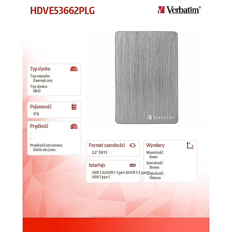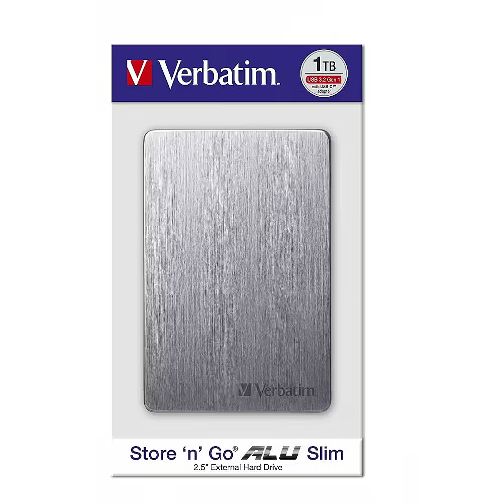 Description - The Verbatim Store n Go ALU 1TB external hard drive combines elegant design with everyday convenience. Its brushed Space Grey aluminum casing gives it a modern look, while its slim design, measuring just 9mm thick and weighing just 150g, makes it easy to slip into a bag or backpack, perfect for home, office, and travel.