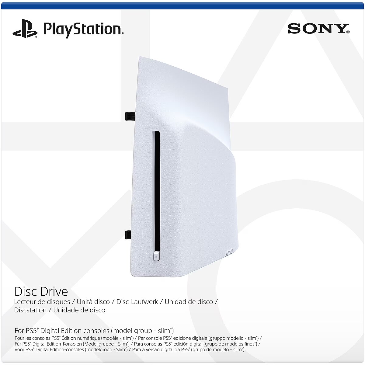 LongSummaryDescription - Sony Disc Drive For PS5 Digital Edition Consoles (model group – slim). Type: Side panel, Platform: PlayStation 5, Suitable for game: PlayStation 5 Slim. Package width: 248 mm, Package depth: 127 mm, Package height: 248 mm. Number of products included: 1 pc(s). Country of origin: China, Harmonized System (HS) code: 9505 5000 00