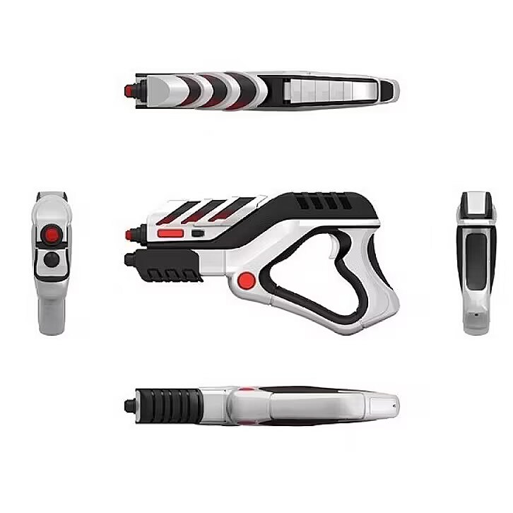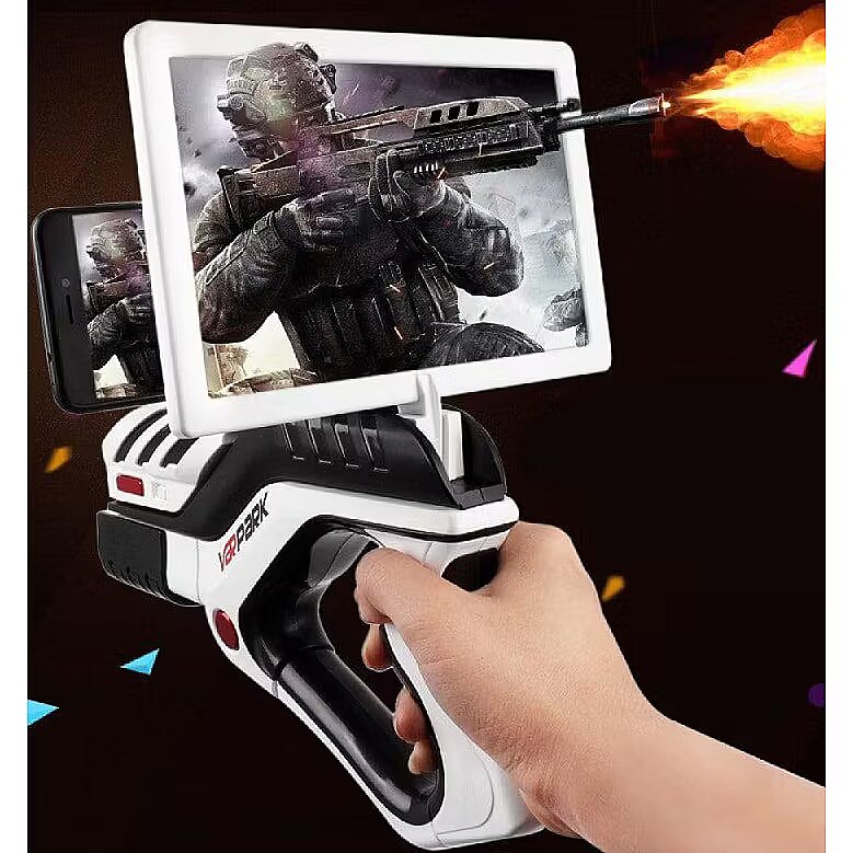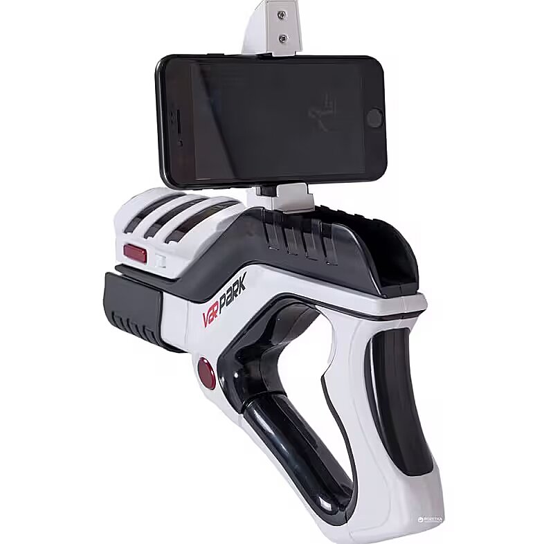 To start using the gun, you need to download the game app to your smartphone, mount the smartphone on the gun by attaching it to the dedicated holders, synchronize the devices, and shoot as many as you want at plates, bottles, or a variety of space monsters, monsters, and other enemies. The phone creates a game room with the help of the camera, where you use the phone's built-in gyroscope and accelerometer to control the game process by moving around the room and destroying your opponents.